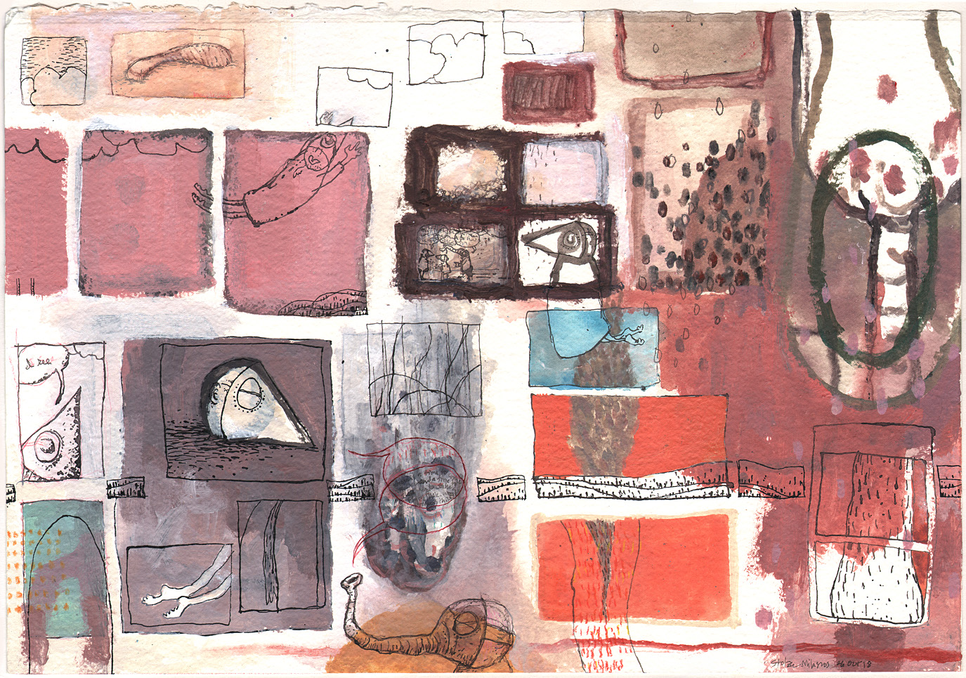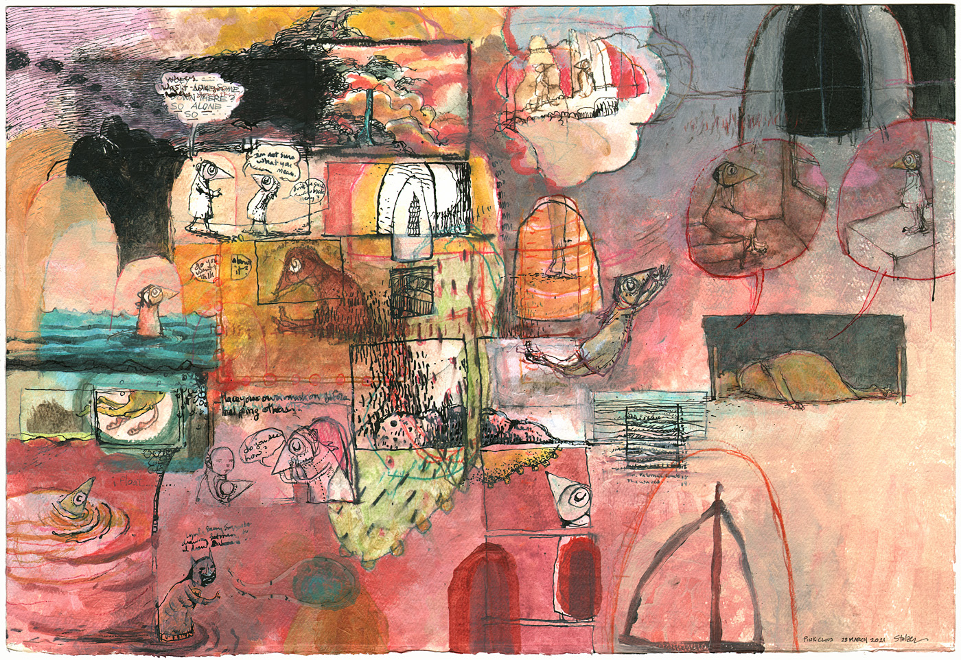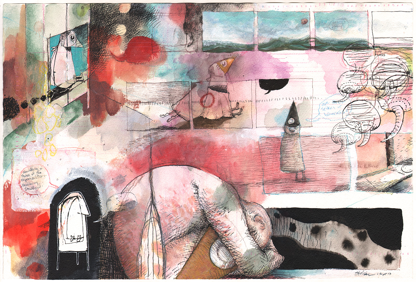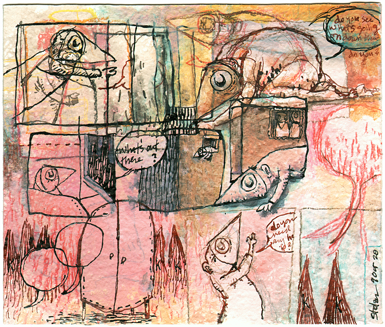 These Free Association Funnies pieces began during the summer of 2017, born out of my need to combine painting and drawing, along with my love of the narrative arts. While not necessarily funny in nature, not all comic strips are comic or funny. The works are presented in reverse chronological order.