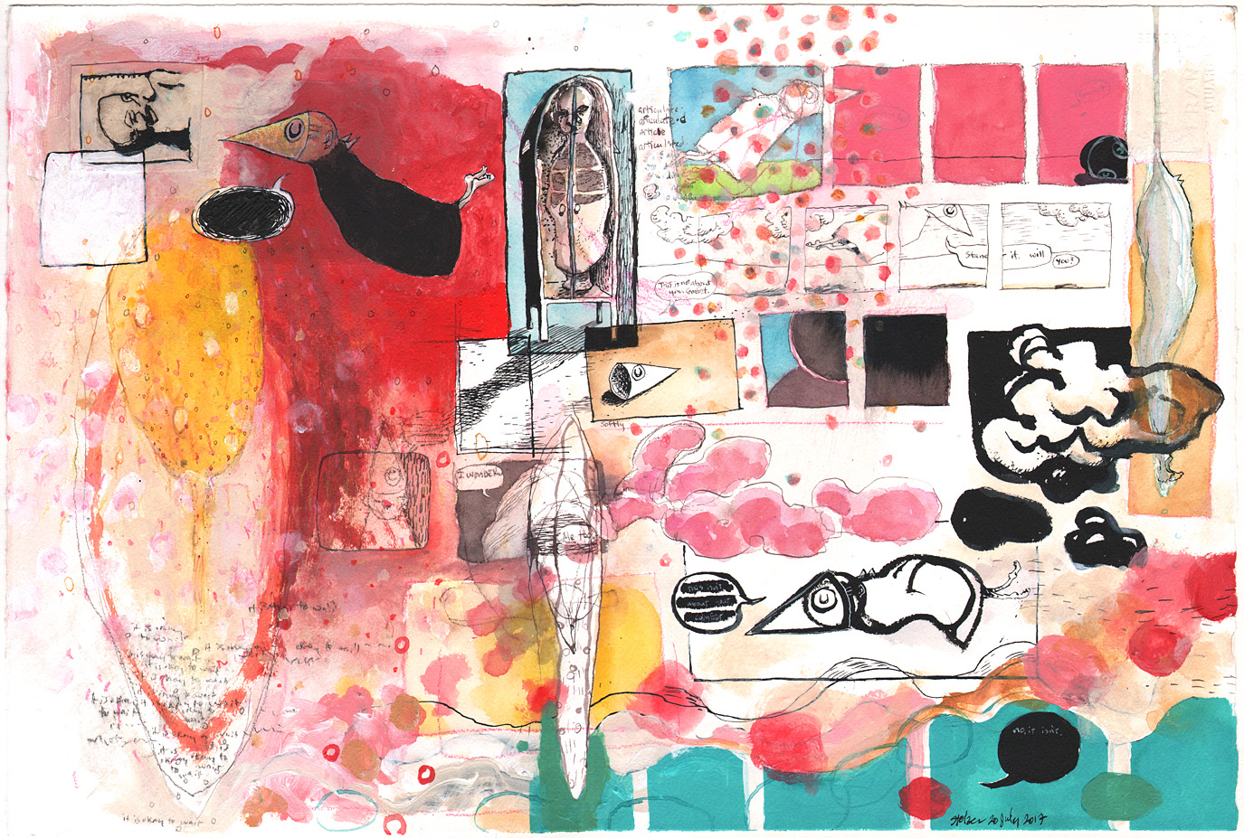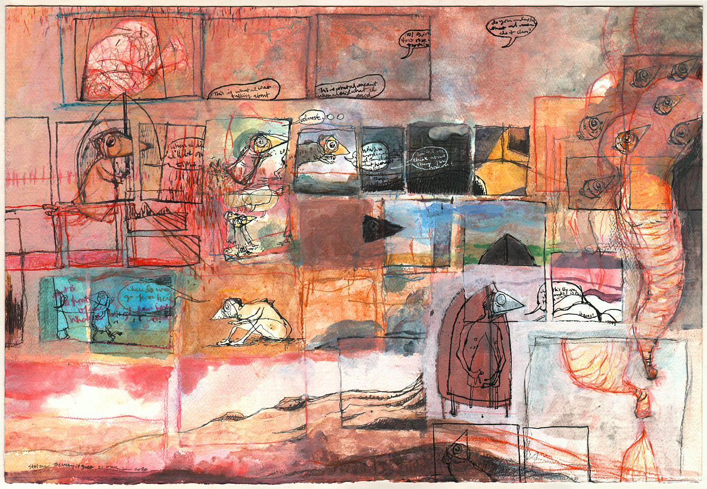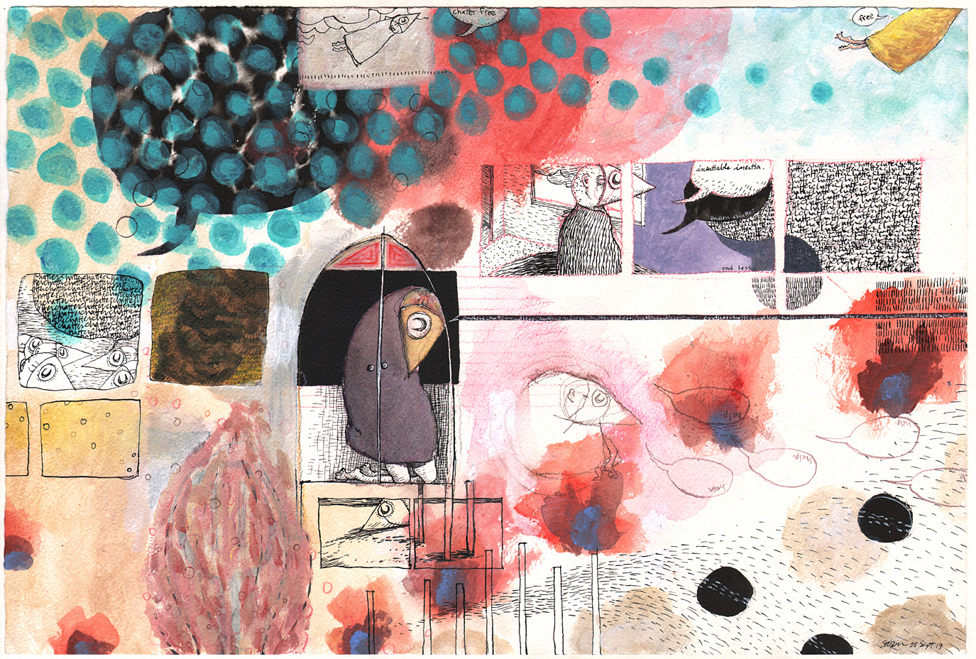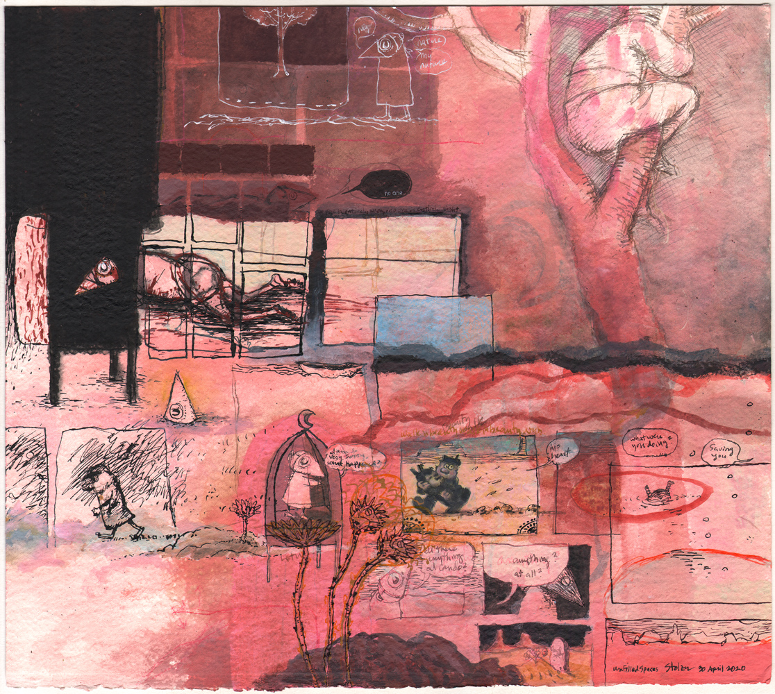 These Free Association Funnies pieces began during the summer of 2017, born out of my need to combine painting and drawing, along with my love of the narrative arts. While not necessarily funny in nature, not all comic strips are comic or funny. The works are presented in reverse chronological order.