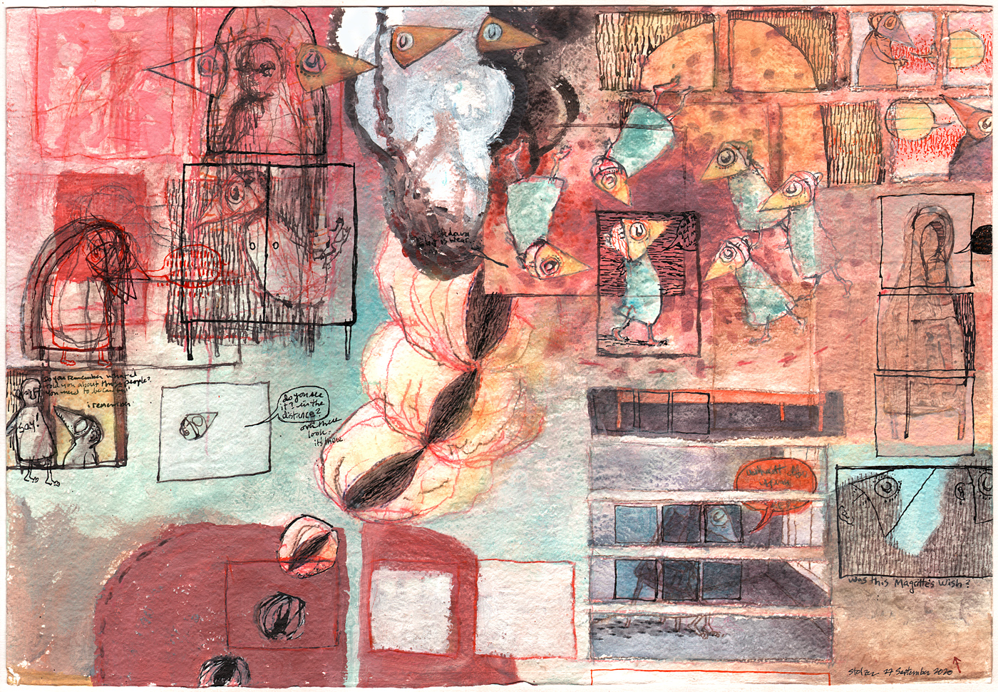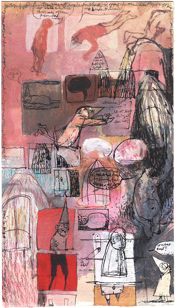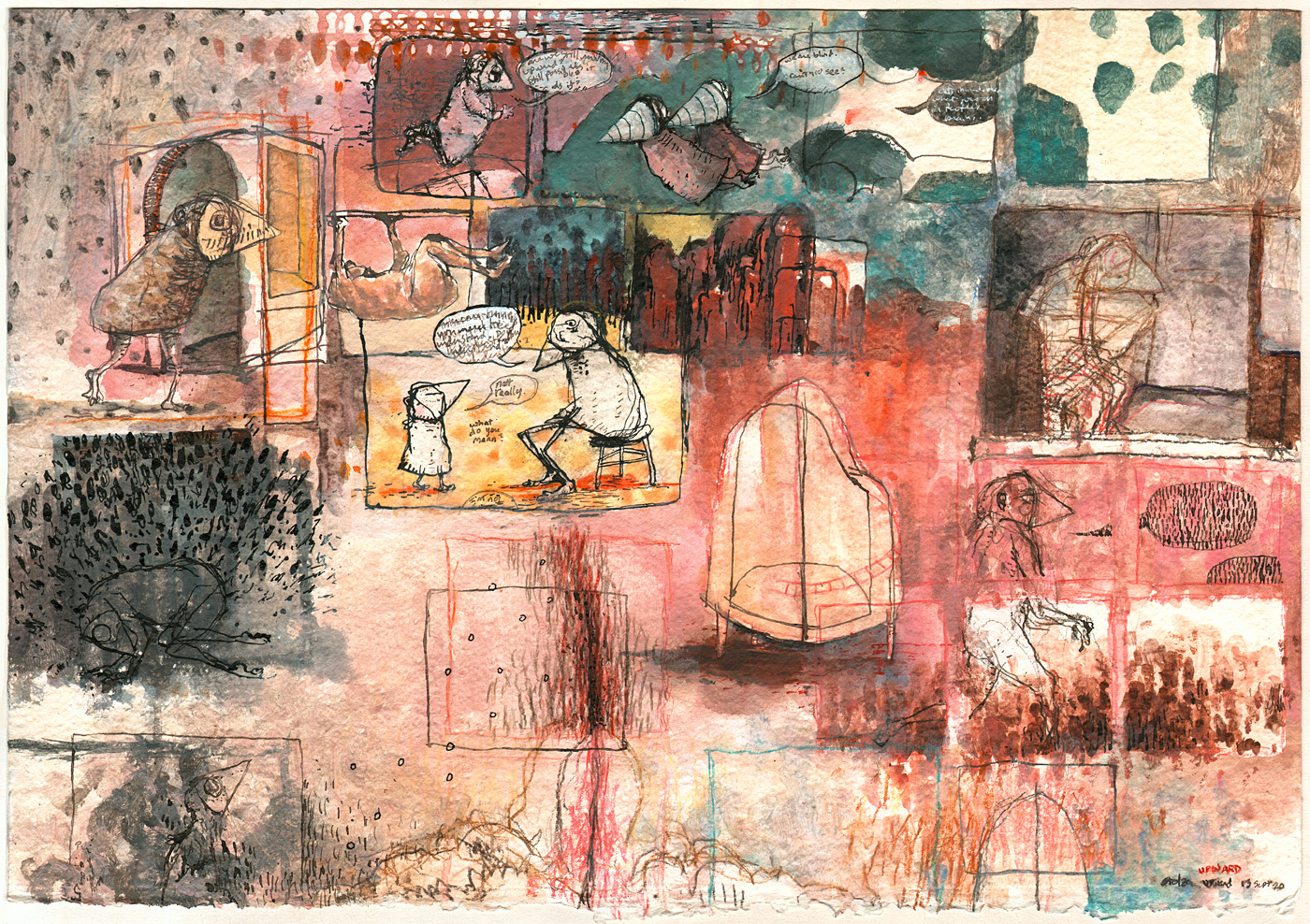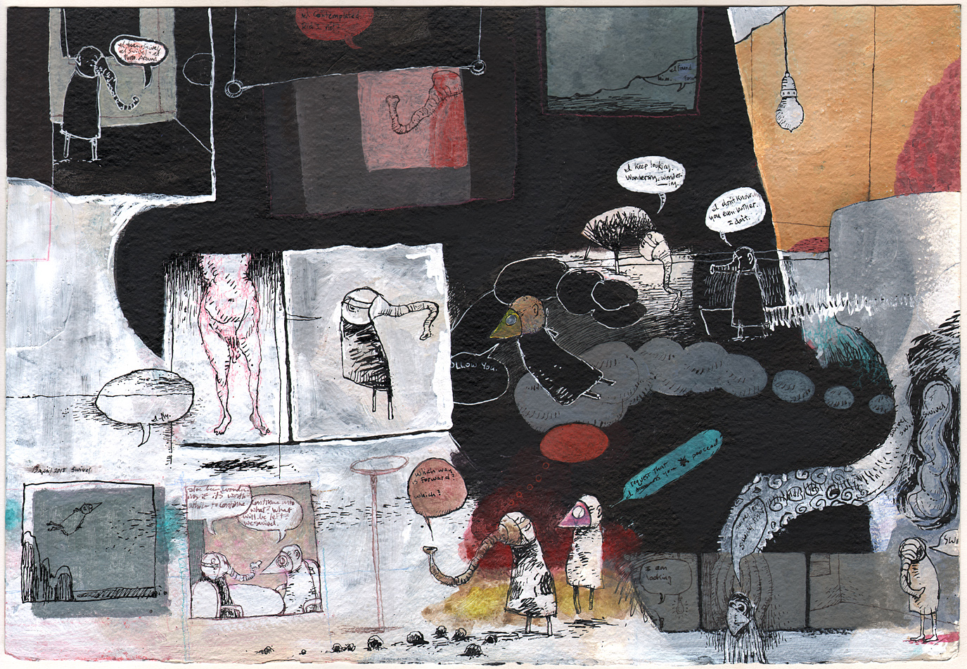 These Free Association Funnies pieces began during the summer of 2017, born out of my need to combine painting and drawing, along with my love of the narrative arts. While not necessarily funny in nature, not all comic strips are comic or funny. The works are presented in reverse chronological order.